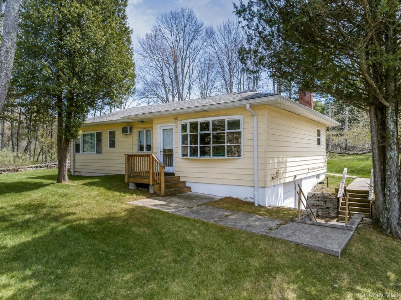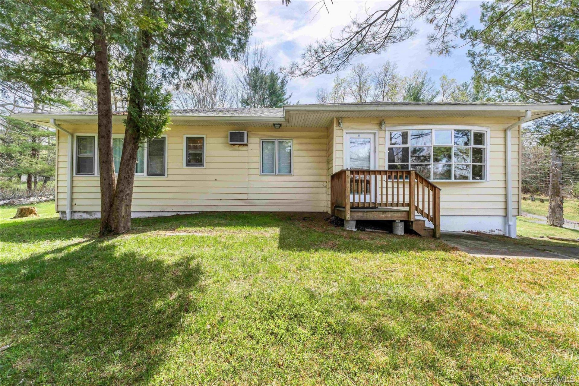Welcome to this beautifully maintained ranch set on a stunning 1-acre property in Swan Lake, offering space, privacy, and exceptional potential for both end-users and investors. This 3-bedroom, 2 full bathroom home features a bright, open layout ideal for year-round living, a weekend retreat, or a smart long-term hold, all complemented by low taxes.Before entering, you're greeted by a convenient landing. Going into a sun-filled living room, creating a warm and inviting first impression. The home flows seamlessly into a spacious kitchen and oversized dining area, enhanced by large windows that fill the space with natural light. From the kitchen, step out onto a large porch perfect for relaxing, entertaining, and enjoying the scenic views and beautifully landscaped surroundings.The home includes a fully remodeled modern bathroom, a generous primary bedroom with ample closet space and a renovated en-suite bath, plus two additional well-sized bedrooms. The home offers excellent closet space throughout, along with convenient washer and dryer space on the main level.Additional features include a 1-car garage that leads directly into a full walk-in unfinished basement, offering excellent potential for storage, recreation, or future customization. Major updates include a roof approximately 9 years old and a new HVAC system just 2 years old, providing real value and peace of mind.Positioned next to Swan Manor, the property showcases beautifully maintained landscaping in both the front and backyard, offering strong curb appeal and a peaceful outdoor setting. The expansive yard provides ample space to relax or entertain, all complemented by scenic views that enhance the home's overall charm. A rare find at this price point with location, land, condition, potential, and upside all in one. Conveniently located near shopping, restaurants, and everyday amenities.